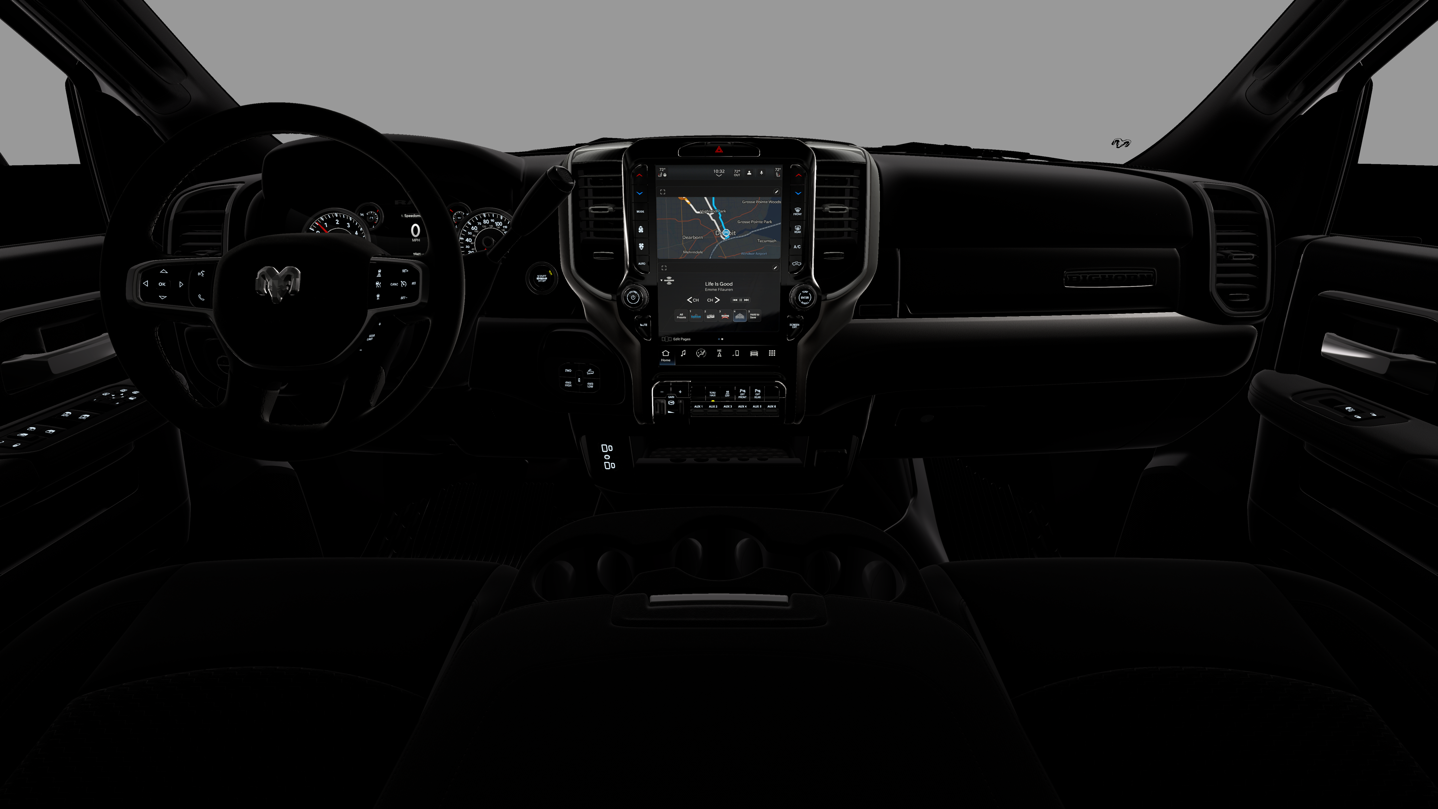 - Radio w/Seek-Scan, Clock, Speed Compensated Volume Control, Aux Audio Input Jack, Voice Activation, Radio Data System and Uconnect External Memory Control